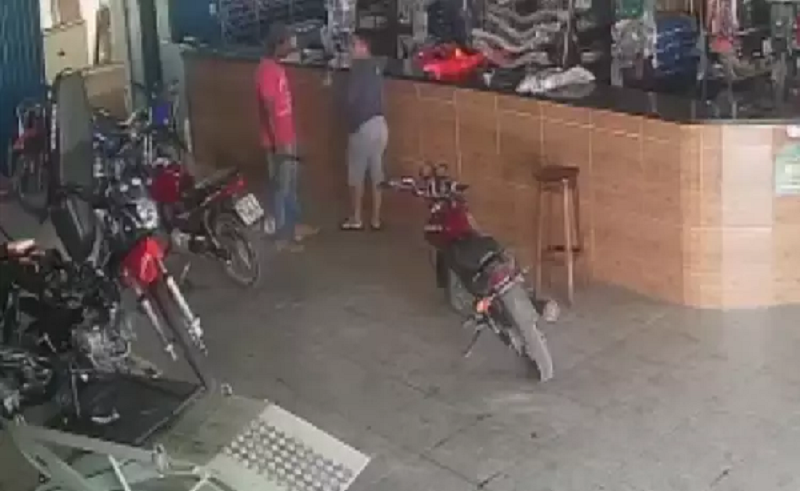 Câmeras de segurança registraram o momento em que um homem foi morto com um golpe de faca na tarde desta terça-feira (5), em Água Azul do Norte, município na região sudeste do Pará.