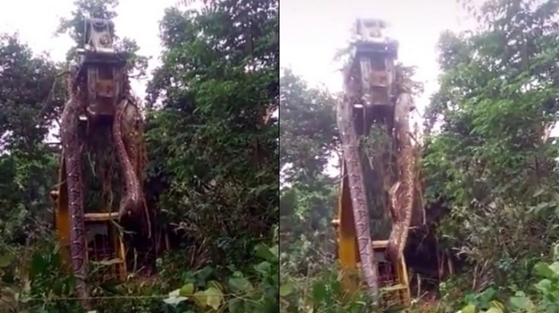 Cobra gigante assusta trabalhadores e é removida por uma escavadeira