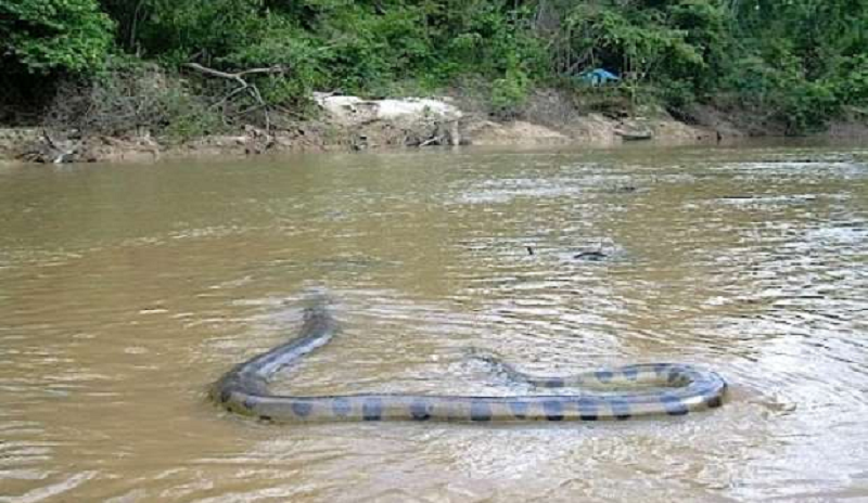 Ele relata que estava descuidado dentro do Igarapé, quando rapidamente sofreu um ataque de uma cobra enorme.