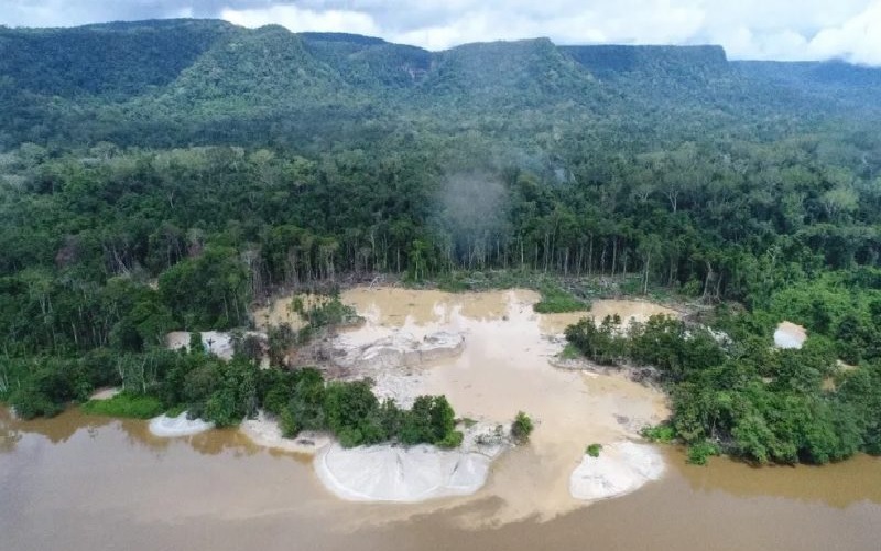 Garimpo ilegal em terra Ianomami no Estado de Roraima ( Foto: Exército Brasileiro/Divulgação)