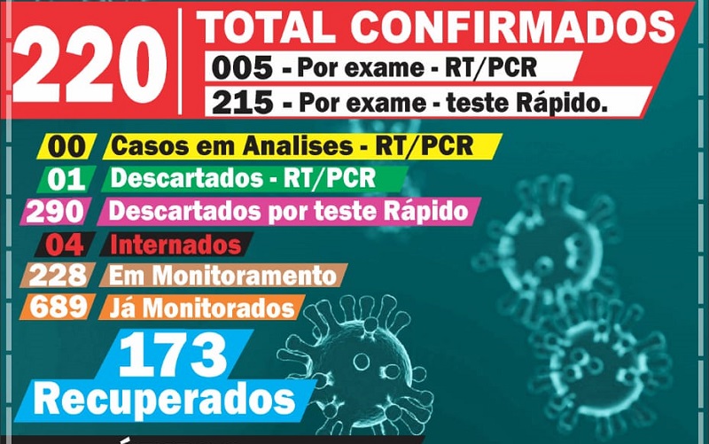 O último boletim registra 220 casos confirmados, 4 internados, 291 descartados e 2 óbito. A Secretaria de Saúde , divulgou, nas redes sociais, um boletim Epidemiológico com 839 casos suspeitos identificados em Novo Progresso.
