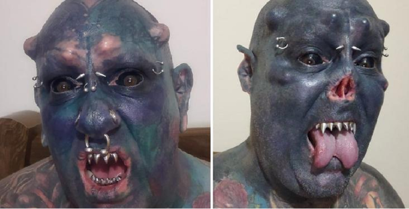 Veja antes e depois do ‘Diabão’, tatuador que quer parecer com demônio