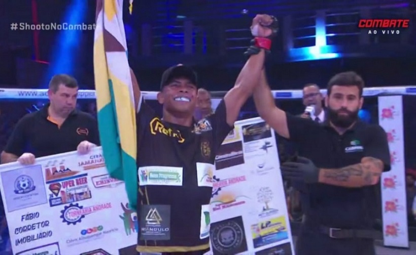 Rangel Anaconda Levanta  bandeira de Novo Progresso após a vitória sobre Bruno Tsunami. (Foto: Reprodução/Combate).
