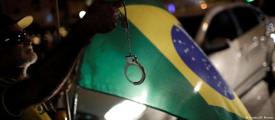 Manifestantes protestam contra Lula no Rio de Janeiro, na véspera do julgamento no STF