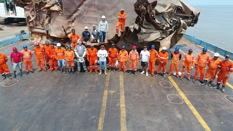 Segundo informações da Marinha que acompanhou toda a operação, os pedaços da frente foram guilhotinados e retirados com o guindaste. Já a popa que estava mais conservada foi reflutuada. O serviço foi executado pela empresa ARDENT, contratada pela Bertolini.