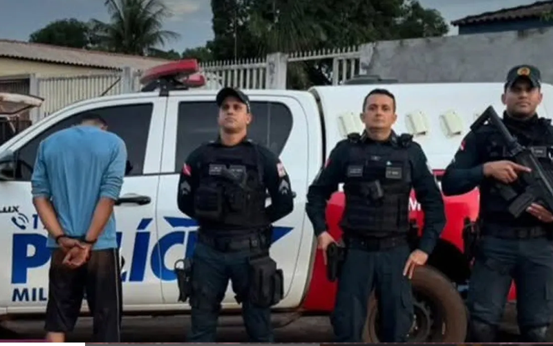 Após verificar a denúncia, uma guarnição da Polícia Militar se dirigiu ao local indicado e encontrou o suspeito no interior do imóvel. Durante a checagem de seus dados, constatou-se que ele possuía dois mandados de prisão preventiva expedidos pela Justiça de Araguaína-TO, além de uma condenação de sete anos de prisão em regime fechado.