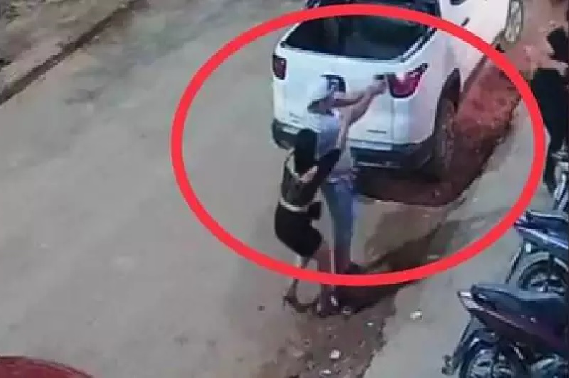 As imagens mostram quando o atirador deixa o bar acompanhado de uma mulher e em seguida atira contra a jovem que atua como segurança o local.