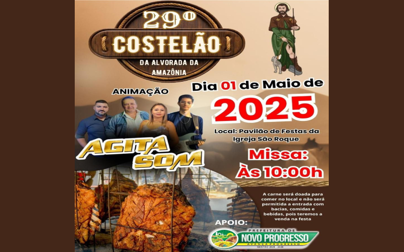 O evento acontece nesta quinta-feira, 1º de Maio de 2025, no Pavilhão de Festas da Igreja Católica da comunidade, localizada a 35 km de Novo Progresso. Com entrada gratuita, a festa promete reunir um grande público em um dia de celebração, alegria e tradição.