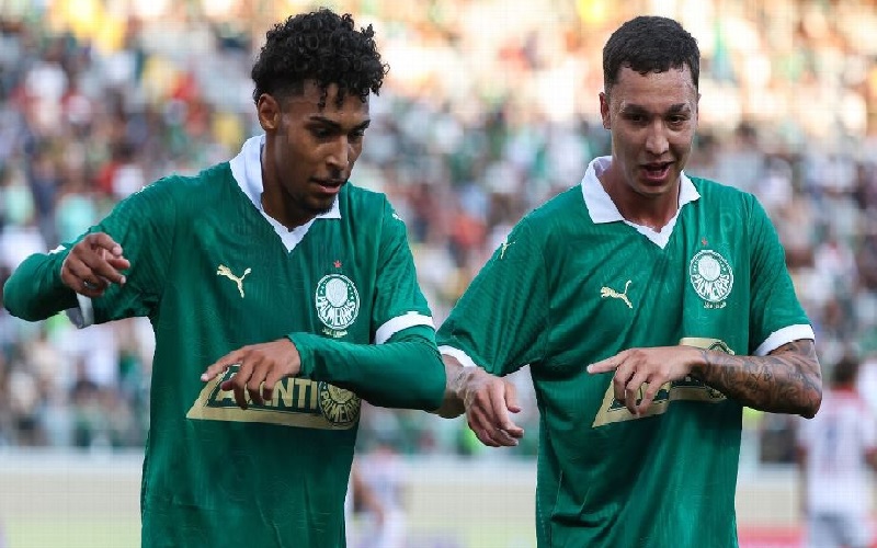 (Foto: Reprodução) – Thalys (à dir.) e Luighi (à esq.) comemoram gol do Palmeiras sobre o Náutico-RR, na Arena Barueri, pela Copinha Fabio Menotti/S.E. Palmeiras