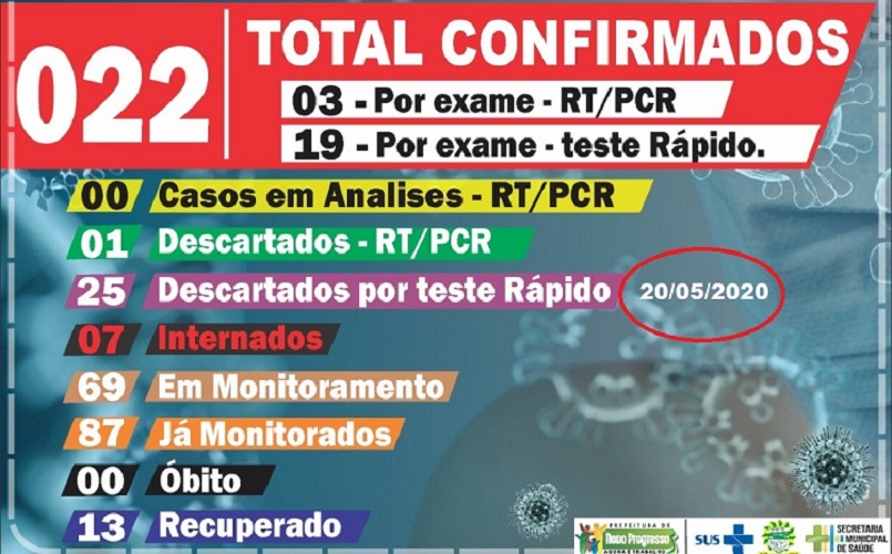 Em meio ao crescimento do número de casos suspeitos e confirmados do novo coronavírus em Novo Progresso somente 12 casos são de pessoas da cidade em sua maioria já chegaram de seus lugares de trabalho (outra região) com a doença e foram diagnosticados com Covid-19 ,após teste em Novo Progresso.