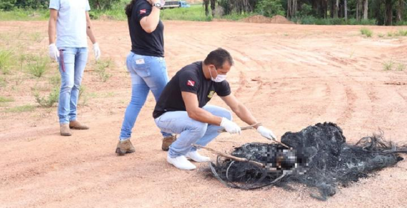 Segundo a Polícia Civil de Marabá, o cadáver foi achado pela manhã, por volta de 7h, em uma área que era usada para a prática de motocross, perto do 1º Grupo de Artilharia de Campanha de Selva, do Exército Brasileiro. A área, que tem acesso pela rodovia BR-230 (Transamazômica) é um descampado sem grande circulação de pessoas, e por isso, acredita-se que o cadáver calcinado estivesse ali há algum tempo.