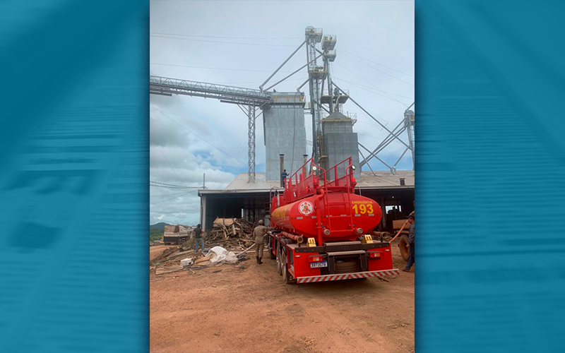Corpo de Bombeiros contém chamas em secador de grãos em Matupá no Mato Grosso