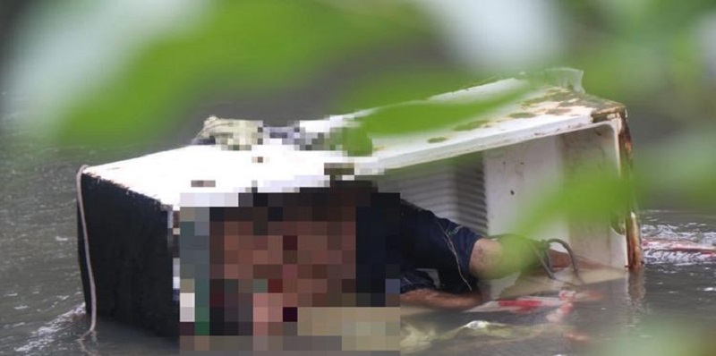 De acordo com a polícia, o corpo foi encontrado por catadores de ferro que estavam tentando recuperar a geladeira.