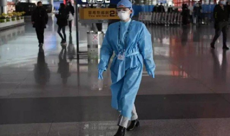 Responsável por teste de Covid-19 em aeroporto na China Foto: AFP