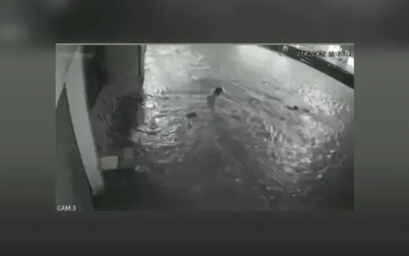 As imagens mostram o momento exato em que ela, acompanhada de outra criança, brincava de nadar na rua alagada, quando em um determinado momento cai no bueiro, que estava encoberto pela água, e some. Logo em seguida, dois adultos e mais uma criança aparecem no vídeo correndo, tentando resgatar a criança.