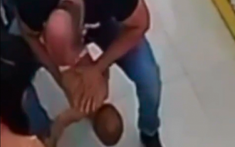 Segundo informações, uma criança de 1 ano, que estava acompanhada de sua mãe, acabou se engasgando. No vídeo, é possível ver que a mãe corre e tenta desengasgar o filho, mas sem sucesso.