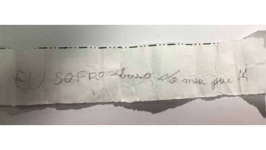 Criança escreve bilhete desesperado para denunciar abusos do próprio pai