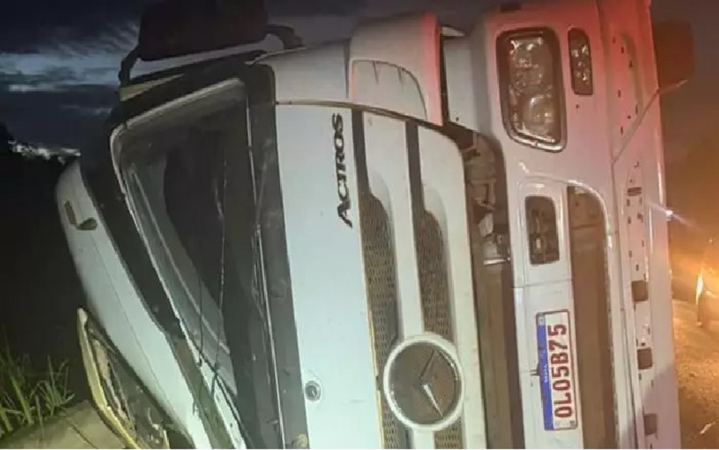 O veículo pesado tombou em uma ponte, informou a PRF
