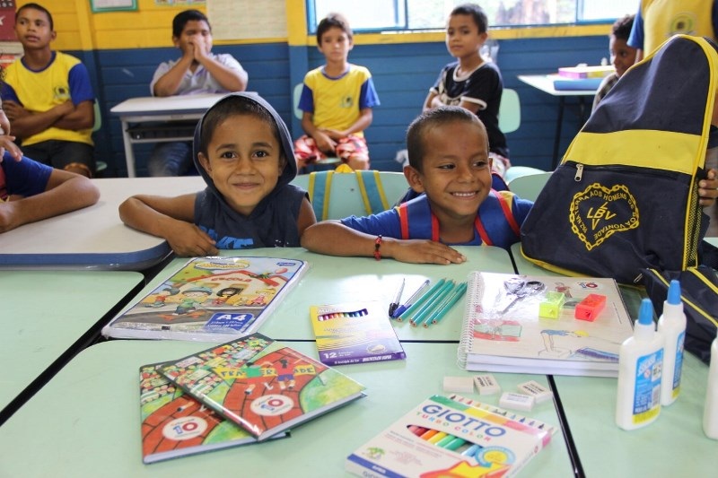 Crianças e adolescentes recebem kits pedagógicos da LBV