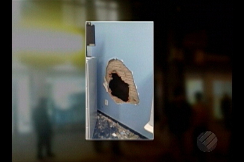 Segundo a Polícia os criminosos teriam invadido o banco após abertura de um buraco feito do prédio lateral que está desativado.