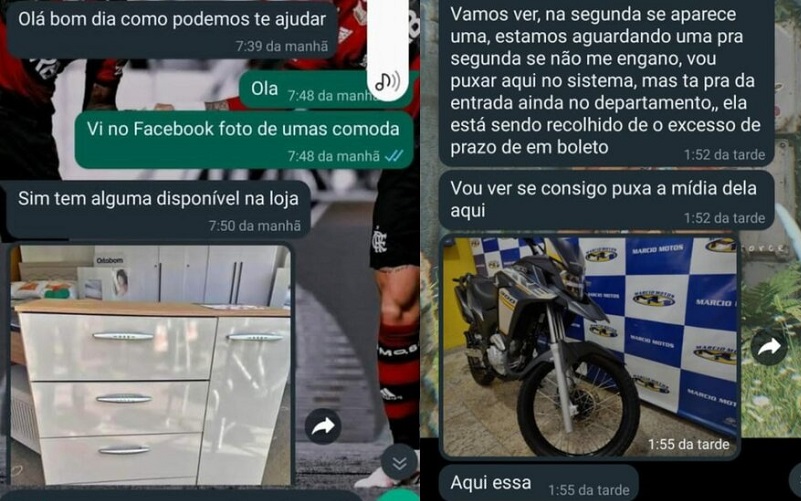 Segundo informações, um dos golpistas se passa por funcionário do DETRAN e oferece motocicletas abaixo da Tabela Fipe. Em outro caso, golpistas se passam por vendedores empresas da cidade e divulgam móveis abaixo do valor de mercado.