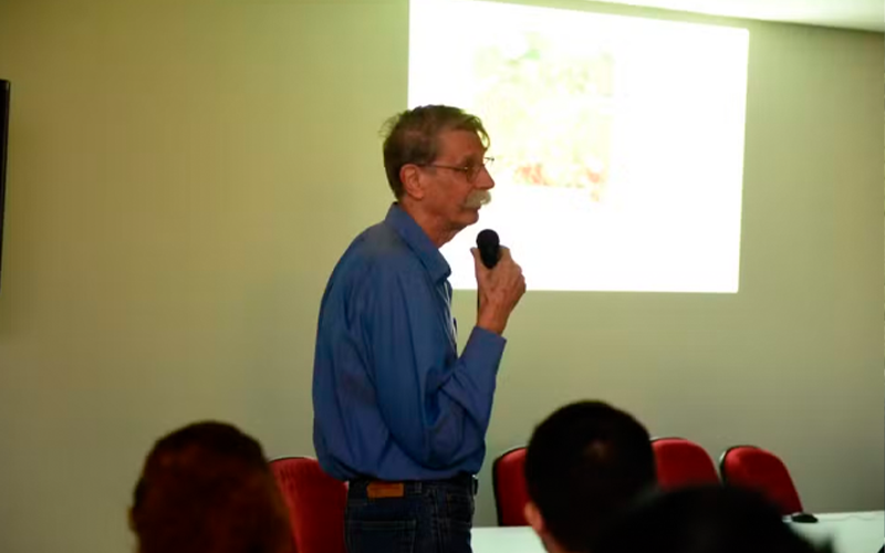 Philip Fearnside, ganhador do Nobel da Paz em 2007, durante conferência em Belém. — Foto: Ascom SBPC