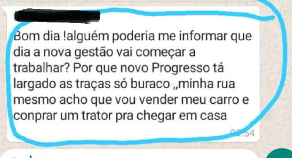 (Foto:Via WhatsApp)- Moradores de Novo Progresso usam das redes sociais para chamara atenção da gestão sobre obras paradas e ruas abandonadas.