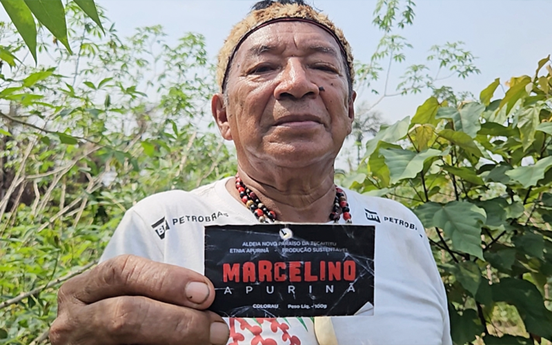 Há 10 anos o colorau da aldeia é vendido na área urbana de Lábrea (AM). Há dois anos, Marcelino decidiu estampar o produto com uma marca própria: “Colorau Marcelino Apurinã”. “Foi o povo que botou esse nome”, brinca.