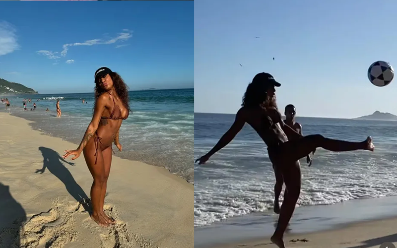 MC Rebecca brilha jogando altinha na praia do Rio de Janeiro | Foto: instagram/Mc Rebeca
