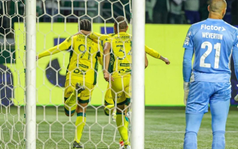 Chico da Costa comemora o gol do empate do Mirassol com o Palmeiras • Reprodução/X @mirassolfc