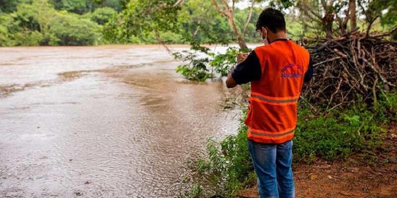 Técnico da Coordenadoria Municipal de Defesa Civil monitora o nível do Rio Parauapebas (Foto:Reprodução / Site Zé Dudu)