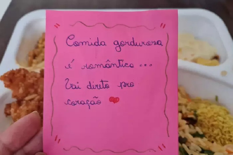A mensagem “Comida gordurosa é romântica… Vai direto para o coração ” surpreendeu a jovem. “Juro que eu não esperava tamanha ‘audácia’… Como que vendem uma comida que te faz logo pensar: Como ou não como? Mas a verdade é que eu não estava num dia muito bom… Aperriada, ansiosa, com muito trabalho… Mas quando chegou o almoço com essa mensagem, eu ri muito… Melhorou meu dia 100%!, comentou Dafna Obadia.