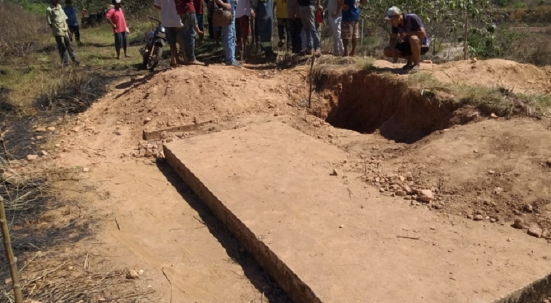 A área fica próximo à entrada do túnel de acesso construído e abandonado pela empresa canadense Colossus, que se instalou no local para explorar o ouro que está no fundo do lago formado com escavação do garimpo de Serra Pelada, na década de 1980.