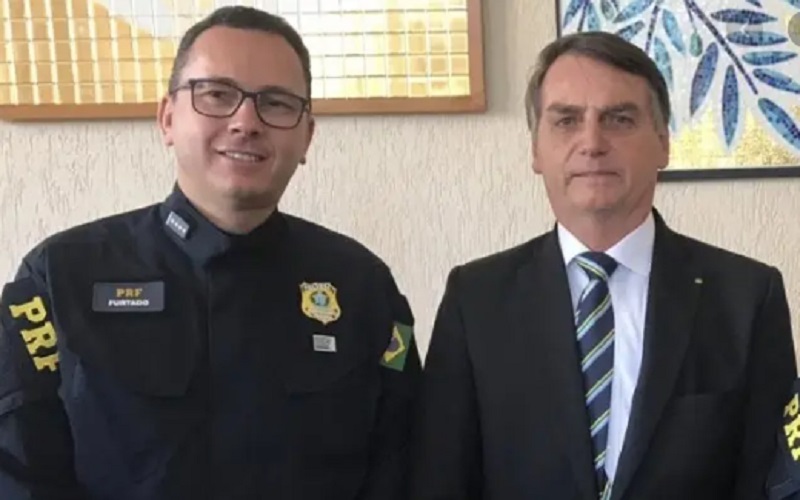 O ex-diretor da Polícia Rodoviária Federal, Adriano Furtado, ao lado do presidente Jair Bolsonaro. (Foto: Reprodução/Twitter)