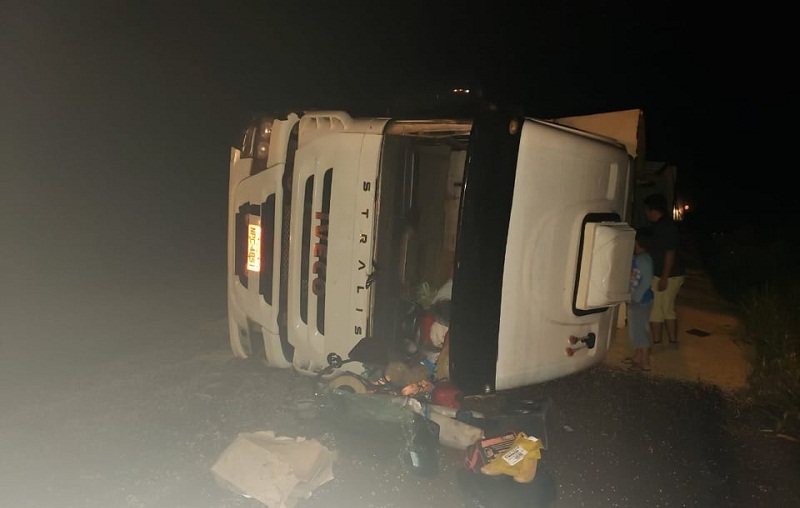 Outra carreta que seguia sentido ao porto de Miritituba ,com soja, capotou após o pino do reboque quebrar em uma reta da rodovia. O motorista perdeu o controle do veiculo e tombou em um trecho reto da rodovia, o reboque caiu no barranco próximo a rodovia. O acidente aconteceu próximo a comunidade de Carro Velho por volta das 20h30mn, a Policia Militar do distrito de Vila Isol , estava no local dando assistência, ninguém se feriu.