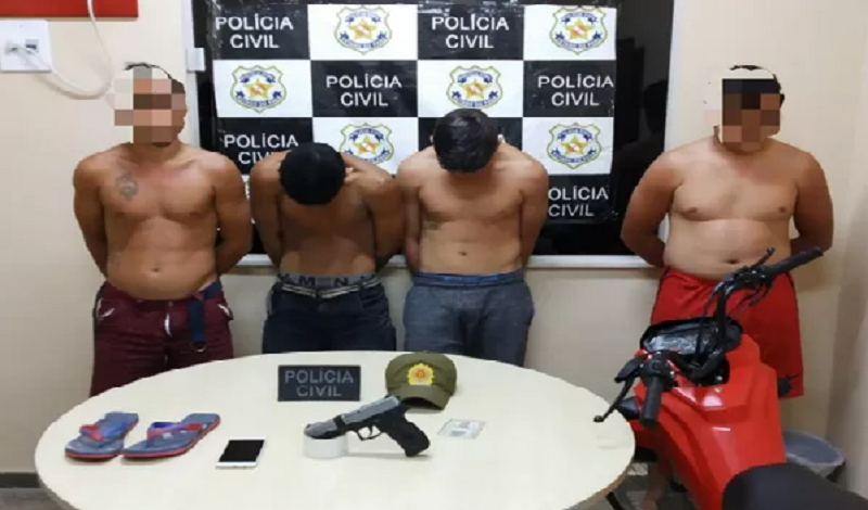 Os quatro foram levados para a delegacia junto com os objetos roubados e uma arma de fogo usada no crime.