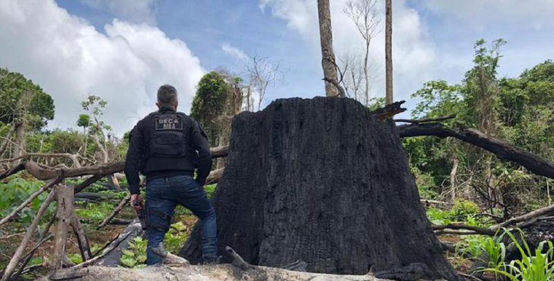 Os policiais acharam, no decorrer das diligências, oito focos de áreas de mata queimada e derrubada ao longo de 7 km.