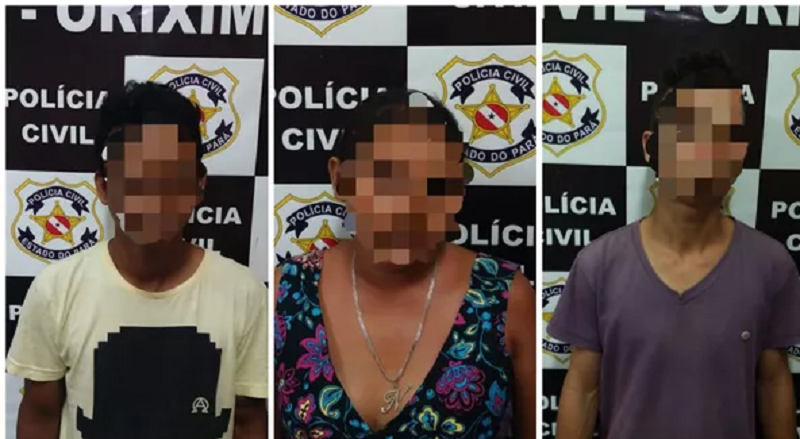 ‘Cachacinha’, ‘Mateuzinho’ e Neliane foram levados para delegacia de Oriximiná — (Foto: Polícia Civil/Divulgação)