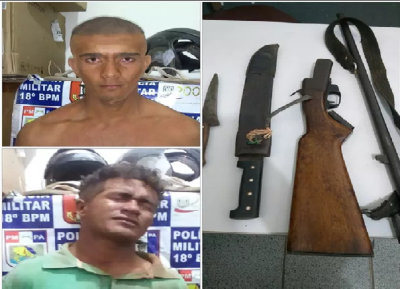 A Polícia Militar foi acionada e após levantamento de informações conseguiu chegar aos suspeitos, que tinham tentado fugir em uma motocicleta, mais foram pegos com a arma do crime, munição e dois facões.