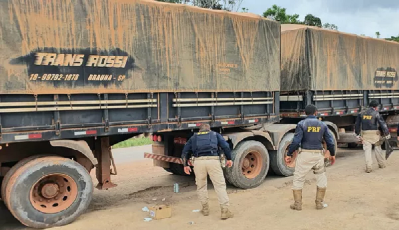 De acordo com informações da PRF, os policias abordaram uma combinação de veículos de carga sendo: um caminhão trator com a placa OQF-4936 e dois semi-reboques com placas QPI-2179 e QPI-2172, respectivamente.