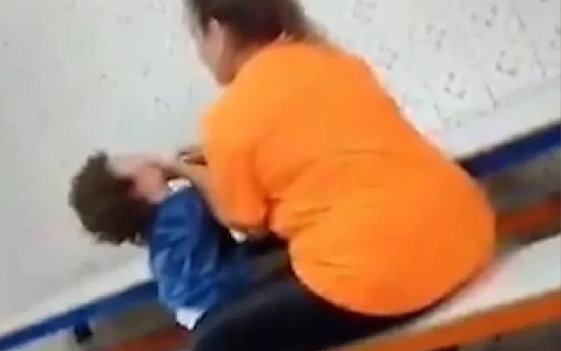 Nas imagens, feitas por uma ex-funcionária, Marina Rodrigues de Lima chacoalha o aluno e tenta obrigá-lo a tomar um líquido.