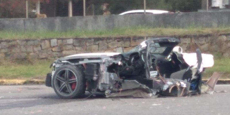 Ele estava em uma Mercedes-Benz AMG GT que colidiu com um poste e partiu no meio