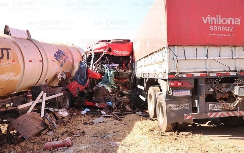 Segundo relatado, a carreta-rodotrem, modelo Scania R540, cor vermelha, seguia sentido sul, quando colidiu na lateral da carreta-rodotrem Scania R440, da mesma empresa.