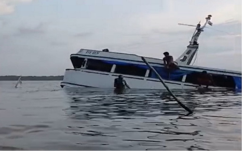Um vídeo que circula nas redes sociais mostra o momento em que o barco já está parcialmente submerso, enquanto moradores e pescadores tentam prestar socorro com embarcações menores.