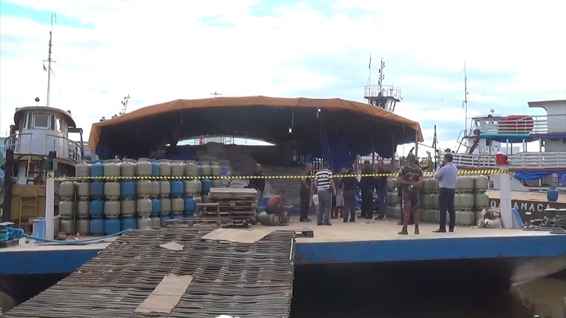 Balsa estava atracada em porto privado de Tabatinga — Foto: Reprodução/Rede Amazônica