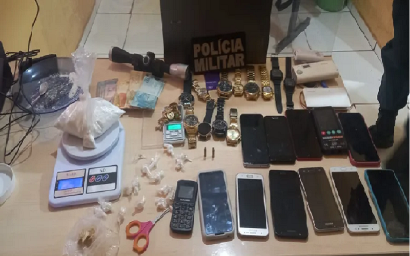 (Foto:Reprodução) – Na casa onde a dupla estava foram encontrados celulares, drogas, relógios e diversas peças automotivas.