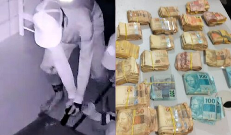 Imagens gravadas por câmara do circuito interno de segurança, mostram o momento em que a dupla força o cofre onde o dinheiro estava e fogem. Eles se utilizaram de uma ferramenta pontiaguda para realizar o arrombamento do cofre.