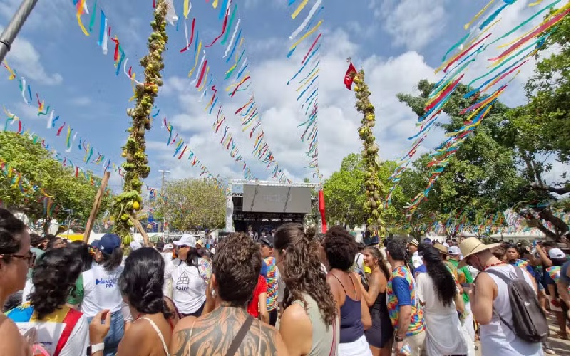 Da praia do Cajueiro (antiga Gurita) os mastros do juiz e da juíza da festa foram carregados até à Praça do Sairé, onde permanecem até segunda-feira (22).