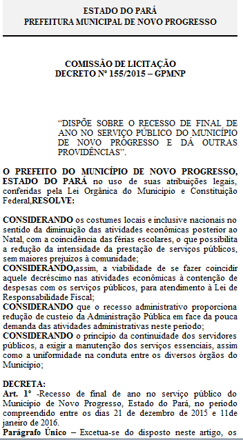Edital deixado na Prefeitura co recesso até dia 11 de Janeiro de 2016.