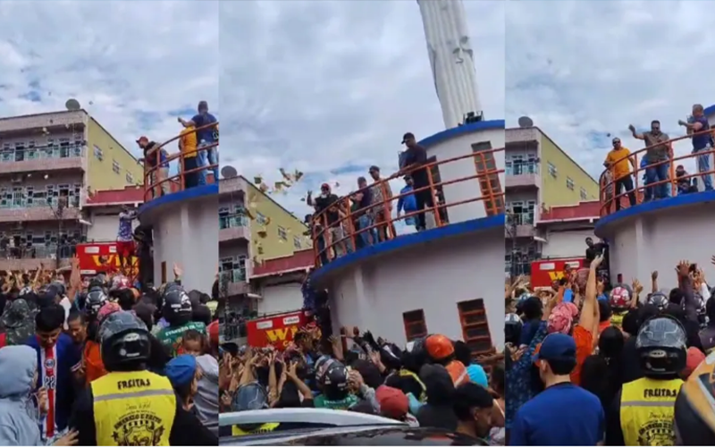 Nas imagens postadas em redes sociais, é possível ver que moradores da cidade se reúnem em volta de uma praça de Coari. Há tumulto entre as pessoas tentando pegar o dinheiro jogado pelo candidato.